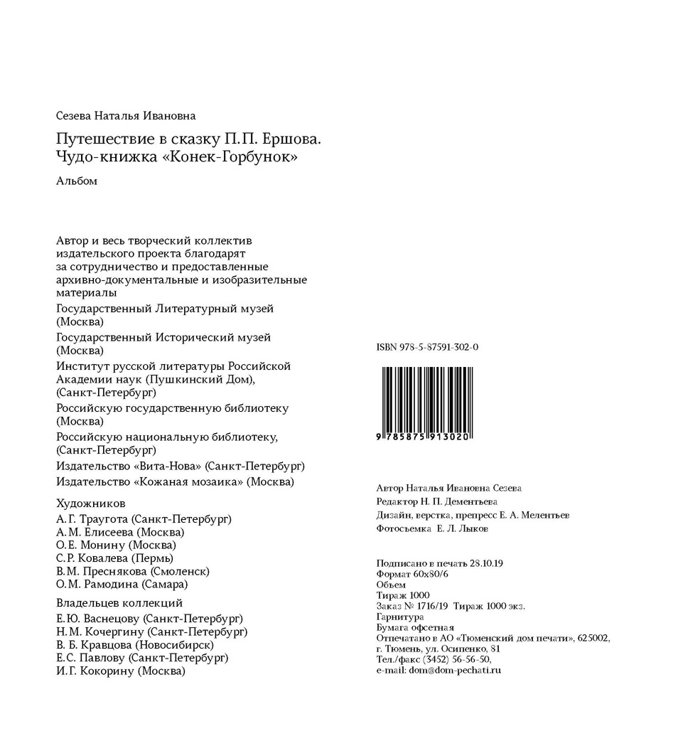 Сезева Н.И. Путешествие в сказку П.П. Ершова. Чудо-книжка «Конек-Горбунок»: Альбом. – Тюмень. – Тюмень: АО «Тюменский Дом печати», 2019. 260 с. 680 ил.
