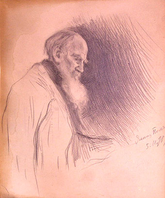 Репин... Что можно прибавить к той уйме, что о нем написана? Таких два слова я скажу о гениальном Репине. Натура стихийная. Серьезен и любит серьезно. Шуткам смеется скорее из любезности; полная противоположность галльской натуре с ее приязнью к шуткам и ко всему легковесному, легкомысленному. Труженик в искусстве. (Помню как Илья Ефимович сравнительно долго писал мой костюм. «Самое трудное-платье», - заметил деловито Илья Ефимович как бы в оправданье, что лицо за этот сеанс мало «подвинулось», а когда я сделал удивленные глаза на такое неожиданное заявление знаменитого ликописца, он добродушно прибавил «А еще труднее...лицо»)