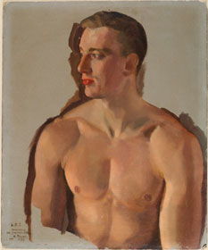 Как в реальности художник увлекает модель в пыль театральных галерок и музейную тишину, также полная жизни молодая плоть переносится в эфемерную, дрожащую материю живописи Сомова. В сумерках подсматривающих предметов и при дневном свете на сине-белых простынях, атлет Дафнис превращается в фарфоровую статуэтку. Розовощекое лицо на мускулистом торсе, он уже помещен художником в мир исчезающих предметов.