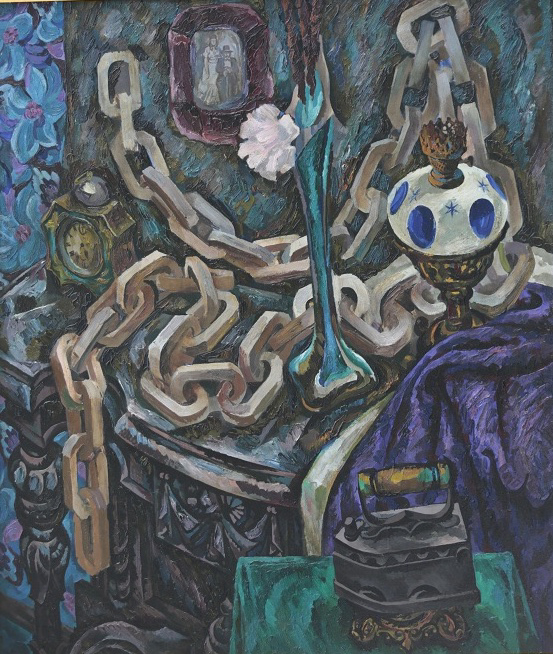 Еще один цикл, представленный на выставке, – это картины-портреты: «Увидеть море в парусах. Портрет Александра Грина» (1972), «Есенин в Бухаре» (1995), «Утро в Михайловском. Портрет А.С. Пушкина» (1980), «Бетховен» (1969), тройной портрет «Поэты» (1967). Эти работы отличаются особой манерой исполнения и носят повествовательный характер, отражая личное отношение автора. Художник погружает каждого героя картины-портрета в атмосферу, которая, по его мнению, наилучшим образом подчеркивает своеобразие личности, романтику ее внутреннего мира.