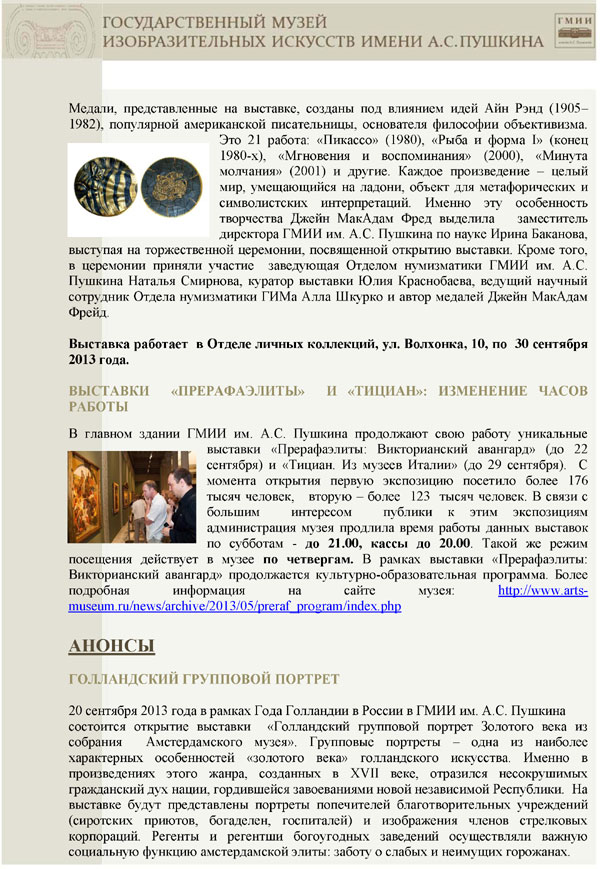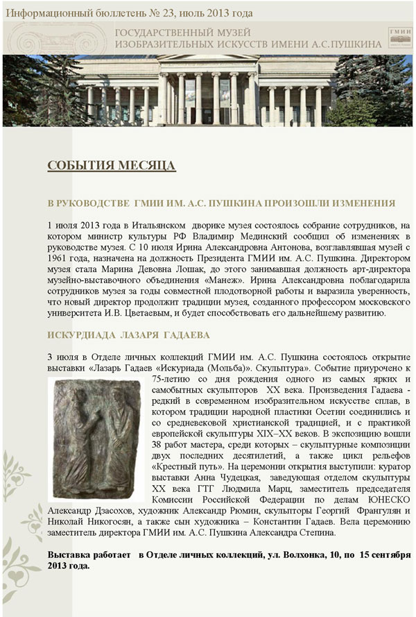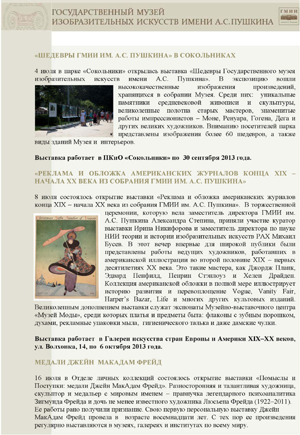 Москва. Информационный бюллетень ГМИИ им.А.С.Пушкина № 23, июль 2013 года