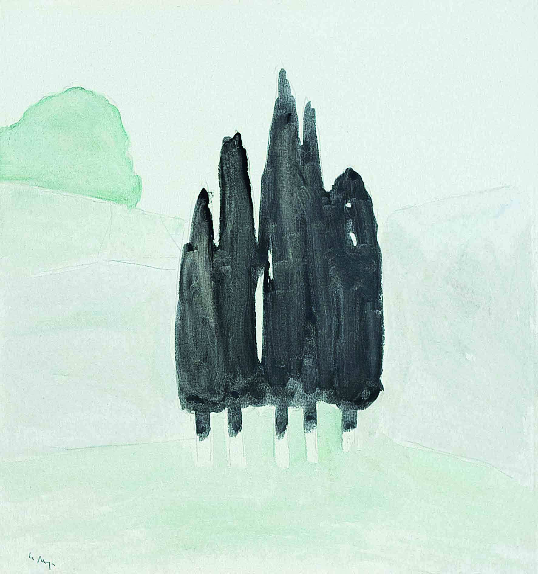 Диалог художника с природой выглядит как монолог самой природы – эстетически организованной, – но чувство автора спрятано за абсолютностью этой организации. ...Кроме темы чисто пейзажной, здесь есть и тема художнической рефлексии, и тема самого искусства как механизма творческого преображения натуры, как способа гармонизации мира. ...Отбрасывая детали, идя на смелые пластические деформации, Ларин обнажает "душу" ландшафтного вида». (Г. Ельшевская)