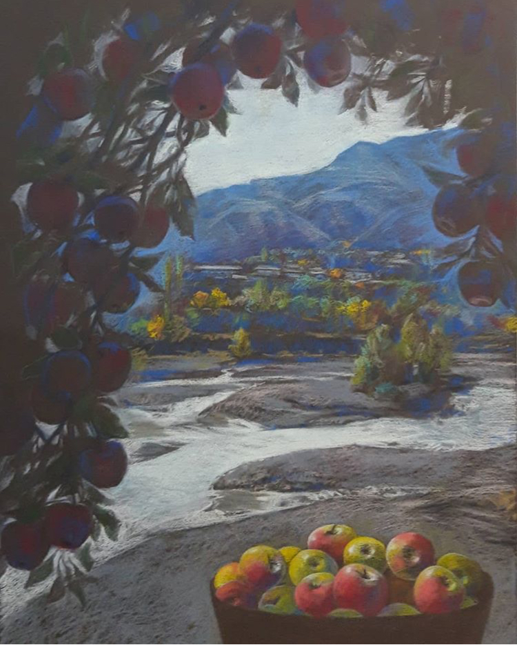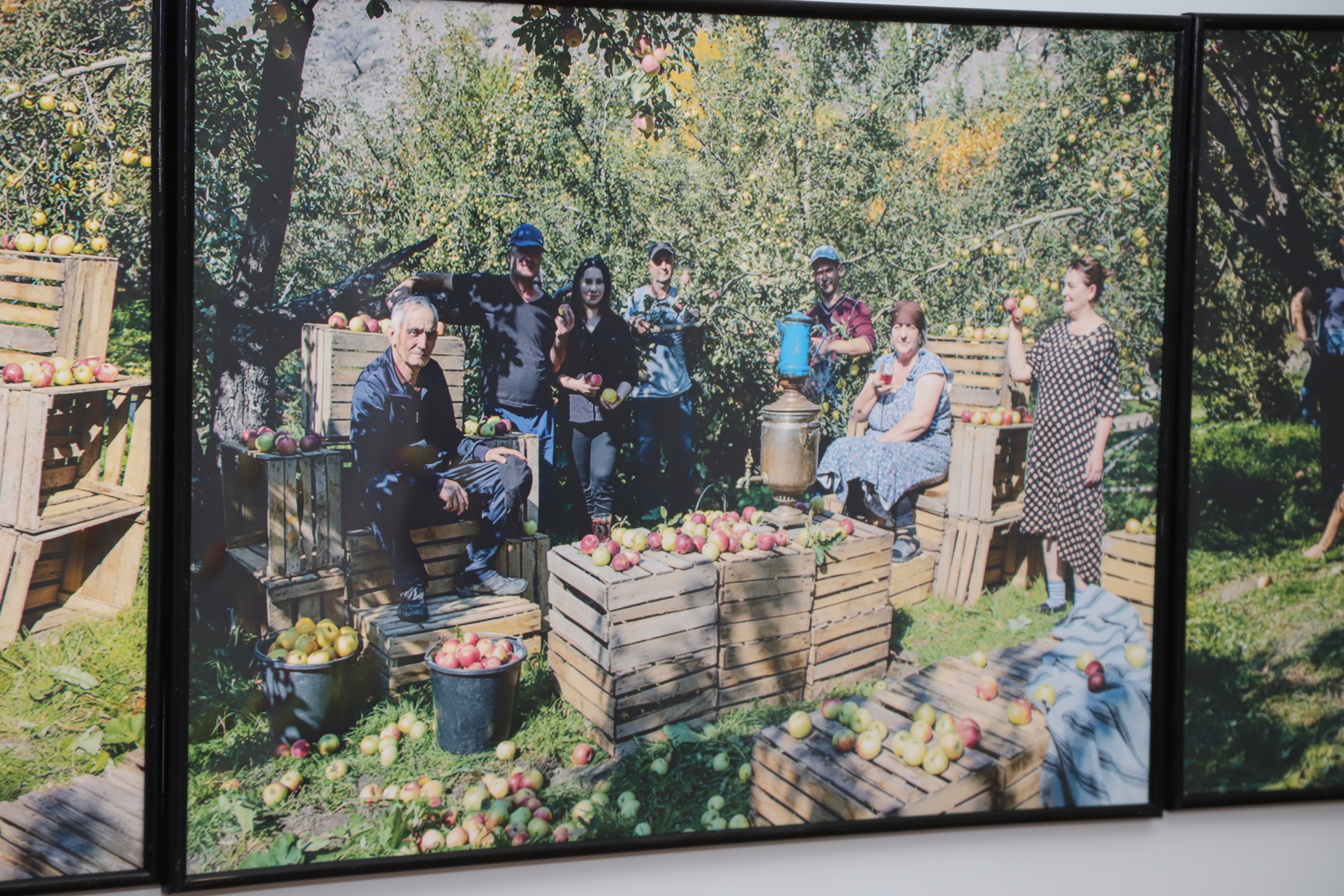 Первым пунктом и темой творческого знакомства, исследования и воплощения в произведениях искусства уникальности «образа места» стало явление - выращивание и сбор яблок в с. Ахты, которое массово проходит каждые 2 года, а само слово «ахтынские яблоки» стало одним из популярных брендов не только территории, но и Дагестана в целом.