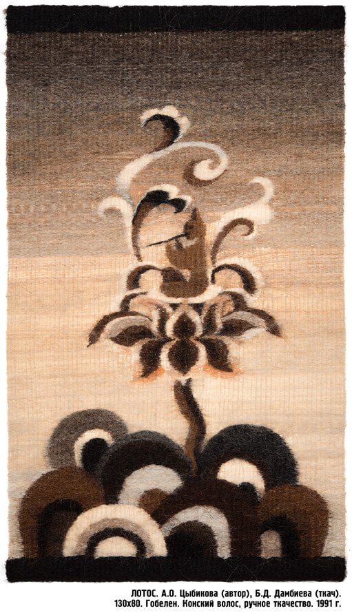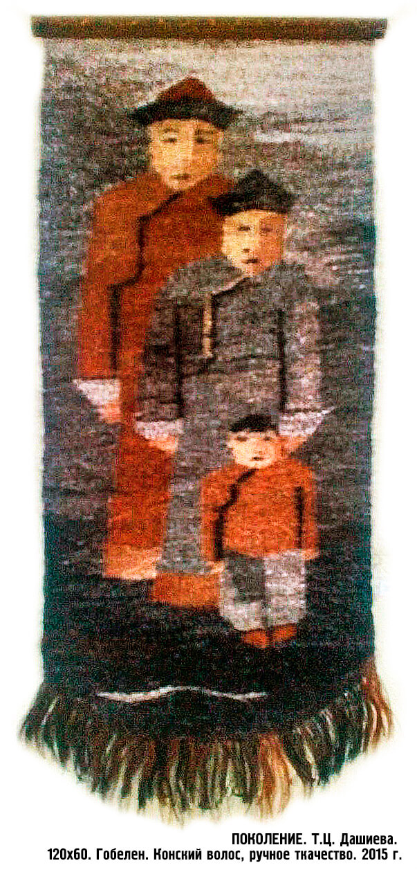 Искусство гобелена обрело на бурятской земле самобытное звучание с появления первых произведений в 1970-х гг. Широкий диапазон тем и сюжетов включает яркие национальные образы, воспевающие красоты Бурятии. Воплощение замыслов через ткачество, декоративными средствами выразительности как: орнаментация, символика, цвет и фактурность нитей, привлекают особым своеобразием. Следует подчеркнуть освоение бурятскими гобеленщиками ткачества из натурального конского и салычьего волоса и создание самобытных произведений, наделенных природной цветовой палитрой, ощущением тепла и плотности текстуры.