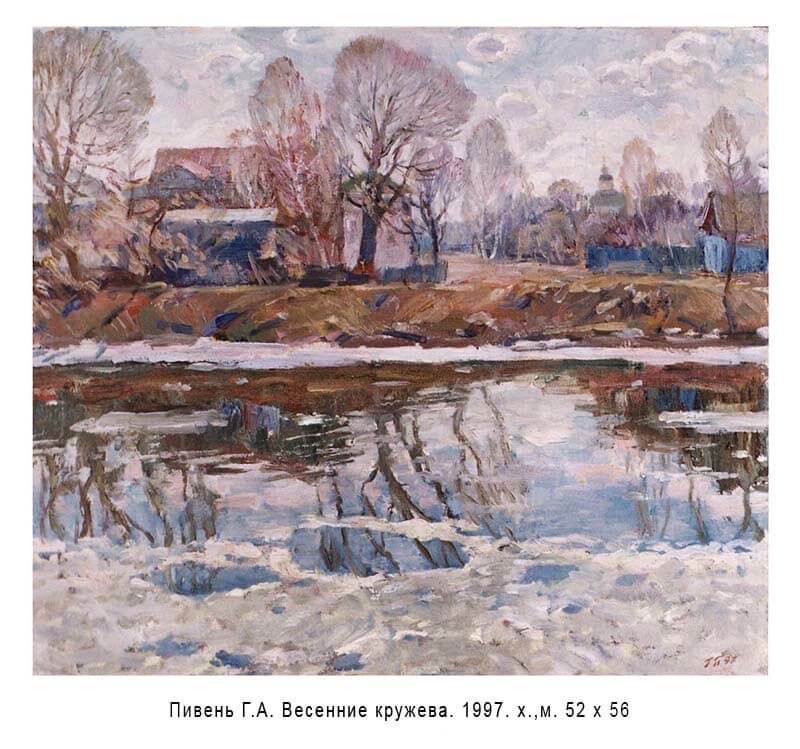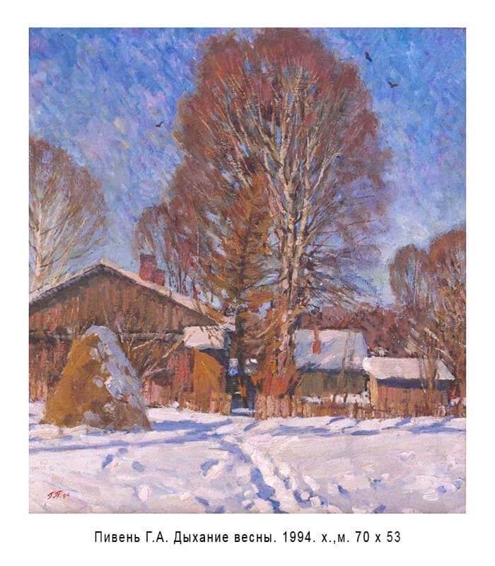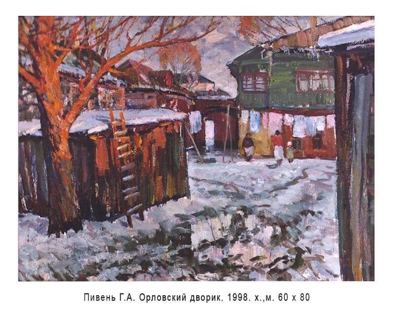 Кажется, сухие цифры – даты переходов с одной должности на другую, избрание. Но, за ними судьба. В 1968 г. Геннадий Пивень окончил ОГПИ и в числе лучших выпускников был оставлен на кафедре изобразительного искусства в должности ассистента. Далее, старший преподаватель с 1980 по 1999 гг., доцент той же кафедры с 1999 по 2001 гг. и с 2001 г. – доцент кафедры живописи, ведущий педагог, обучающий будущих художников-живописцев. Член Союза художников России с 1995 г. Геннадий Антонович любил повторять, что совмещение педагогической деятельности и личного творчества архисложная задача, и не каждому дано с ней справиться. Действительно, можно быть востребованным художником, но не иметь ни желания, ни таланта передать свои знания студентам. В то же время, у прекрасного преподавателя, серьёзно относящегося к воспитанию подрастающего поколения, попросту не хватит энергии для создания собственных произведений. Педагогика не менее «ревнива», чем искусство. По счастью для студентов, он успешно совмещал в себе оба дара. Не случайно, его творческая и педагогическая деятельность на протяжении пяти десятков лет были отмечены Почетными грамотами Орловского государственного университета, Орловского областного Совета народных депутатов и Секретариата Союза художников России.