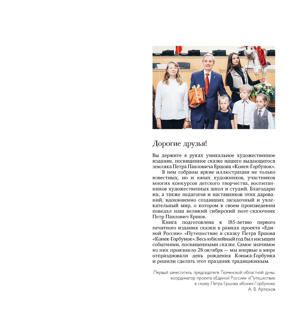 История иллюстрирования сказки П.П. Ершова «Конек-Горбунок» – это своего рода феномен отечественной культуры, уникальное явление, имеющее аналог лишь в книжной пушкиниане. Немного найдется произведений в отечественной литературе, которые были бы так популярны и любимы. Сказка «Конек-Горбунок» и сейчас издается большими тиражами в России, а к ХХI века она переведена почти на все языки мира. П.П. Ершов стал любимейшим автором для художников самых разных поколений, благодаря которым была создана уникальная изобразительная ершовиана. На страницах альбома представлены основные этапы ее развития за 185 лет: от первых рисунков до иллюстраций, исполненных отечественными и зарубежными художниками в начале ХХI века. Наряду с оригинальными (не печатными!) иллюстрациями (опубликованными и неопубликованными), в ткань альбома будут введены также рабочие материалы из мастерских художников и фондов российских музеев, архивов, библиотек – эскизы, наброски, натурные зарисовки, позволяющие проследить путь рождения иллюстрации к ершовской сказке «Конек-Горбунок».