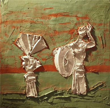 Эту технику можно назвать лепной графикой: если традиционно скульптура отталкивается от объема, то здесь - от плоскости, от рисунка, усиливая, порой до гротеска, его ритмическую, композиционную основу. Рельеф будто вырастает из тщательно сформированной и сбалансированной композиции. С другой стороны, эти рельефы можно назвать станковой скульптурой: если графику или живопись предполагается рассматривать с одной точки, то скульптура диктует необходимость обхода или хотя бы движения мимо, с каждым шагом являя зрителю новые варианты композиции и пластики. Рельефы Бориса Кочейшвили имеют форму и размер и станковых произведений, но с разных точек и при разных источниках освещения, расположенных справа, слева или же фронтально, дают неожиданно разные изображения, как за счет сложной пластики рельефа, так, и это, пожалуй, наиболее интересная особенность, - за счет разнообразной игры теней, создающих на плоскости фона самые причудливые композиции и контуры.