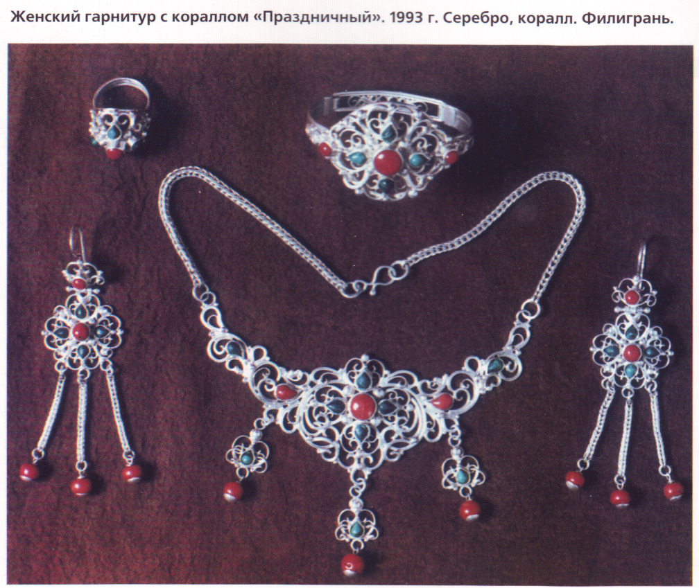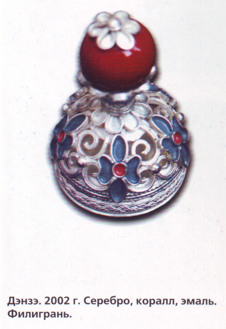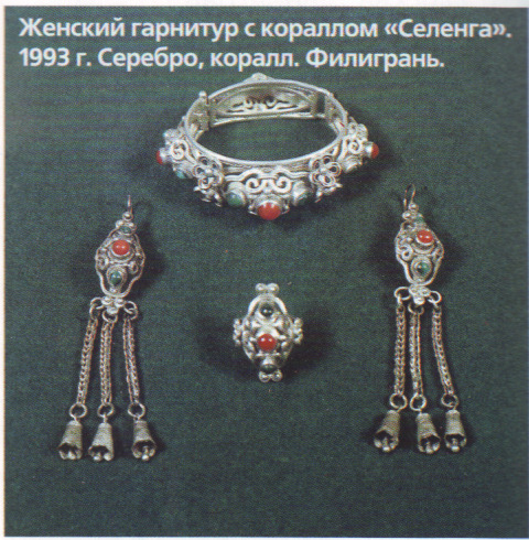 Несомненным украшением выставки станут работы белых дарханов – серебряных дел мастеров: роскошный женский комплект «Сагаалгаан», состоящий из 8 предметов, созданный одним из ведущих мастеров традиционной бурятской торевтики – Булатом Жамбаловым, яркие и самобытные работы Жамсарана Эрдынеева, поражающие почти первобытной экспрессией зооморфных мотивов, безусловно , интересны и лаконичные украшения молодого ювелира Зоригто Маркуева.