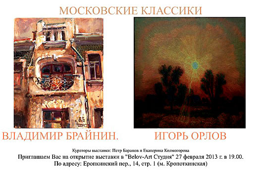 Проект объединил «Московских классиков» самых разных жанров, форм и художественных вкусов, таких как, Владимир Брайнин и Игорь Орлов. Их работы призваны создать ощущение единого жизненного пространства, в котором достигаются вершины мастерства в творческом переживании окружающего мира. Образы, наделенные внутренней энергией одномоментности, дают повод задуматься о происходящем вокруг нас. Художники Владимир Брайнин и Игорь Орлов говорят о нашем времени и на нашем языке, будучи уже при этом частью культуры и истории.