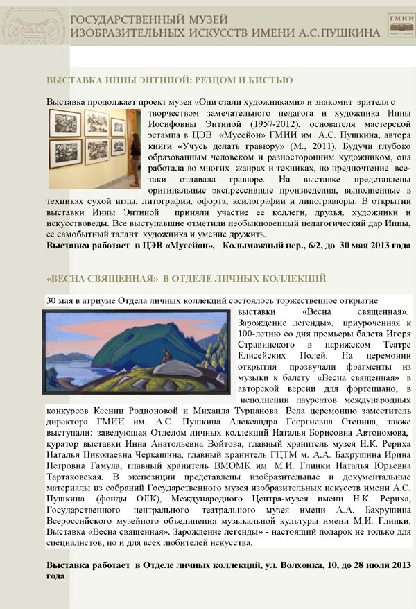 Москва. Информационный бюллетень ГМИИ им. А.С.Пушкина № 21.