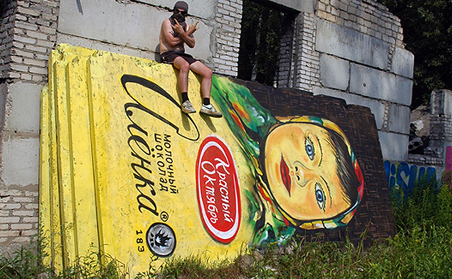 Когда видишь работы "московского Бэнкси", как его назвала газета Гардиан, собранные вместе, начинаешь понимать, что он не мог состояться нигде, кроме как в неразрешенных местах публичного пользования. Не Павлу принадлежит фраза, что для уличного художника галерея - это весь мир, она принадлежит другой уличной знаменитости - американскому райтеру JR, но для Павла она характерна в той степени, в какой определяется сущностная особенность стрит-арта, как явления свободного самовыражения в первую очередь. Сотни работ на разные темы. Неудобные для общественного мнения. Социально конфликтные. Резкие по форме. Раздевающие и отрезвляющие по смысловым значениям, но с которыми трудно не согласиться. Как, например, с циклом работ, в которых художник использовал изображение девочки с известной всем упаковки шоколада Аленушка в качестве метафоры высказывания , что в этой жизни все продается, а кому продавать нечего, продает себя.