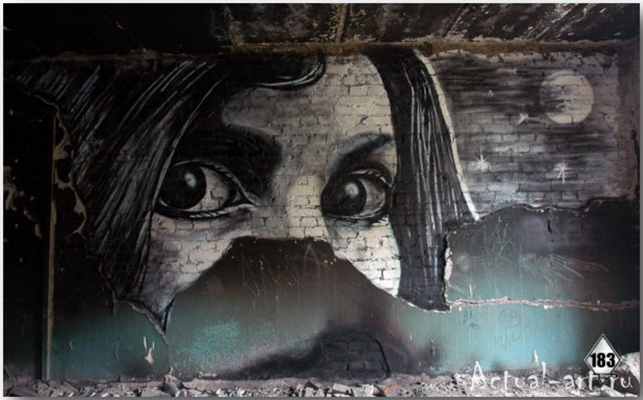 За внешними событиями обострения любовной связи между Крымом к Россией, честно нужно признать мирового значения, как-то незаметно на второй план отошли внутренние проблемы, а именно: снижение роста экономики, падение курса национальной валюты, инфляция и естественное в таких условиях усиление тревог простого человека по причине неуверенности в завтрашнем дне. В этой ситуации художественная прослойка проявила себя как и положено в любом толерантном обществе высказываниями прямо противоположного содержания. С одной стороны предсказуемо появилось письмо деятелей культуры и искусства в поддержку власти, а с другой непредсказуемо от обратного в залах Московского музея современного искусства на Гоголевском бульваре открылась персональная выставка не очень известного в широких кругах уличного художника Паши 183, в миру Павла Александровича Пухова. Сразу хочу оговориться, лучшей, на мой взгляд, за последние десять лет со времени проведения в музее в 2003 году выставки "Артконституция".