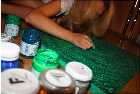 Сегодня Юлия работает в авторской технике- full contact, пишет картины пальцами, перенося свою энергию на холст. Благодаря такой технике и ярким краскам, которые всегда выбирает художница для своих работ, картины словно оживают. Кажется, что изображения движутся, меняя свои красочные оттенки и оживляя пространство вокруг. В этой же технике художница создаёт предметы декора.