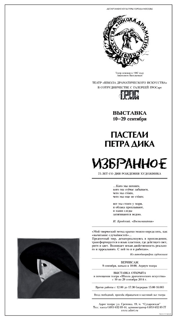 Семьдесят пять лет назад в селе Глядень Благовещенского района Алтайского края в семье этнических немцев родился один из самых тонких и глубоких отечественных мастеров последних десятилетий ХХ века – Петр Гергардович Дик (1939–2002). Судьба была к нему одновременно и сурова, и великодушна. С избытком познав трудности военного детства, многократно умноженные из-за репрессий родителей по национальному признаку, он проделал долгий и сложный путь к профессии: в 1977 году через несколько лет после окончания «Строгановки» Дик был принят в Союз художников. Лишь в переломные «девяностые» к обосновавшемуся во Владимире мастеру приходит не только «местное», но и вполне заслуженное европейское признание: в 1992–1993 он персонально выставляется в Москве и Лондоне, в 1994 показывается в Третьяковской галерее, в 1995–1996 отправляется с выставками в Германию и Италию, а в 1997 экспонируется в Русском музее в Санкт-Петербурге. И это, на самом деле, небольшая часть открывшейся вдруг перед ним обширной выставочной географии, которая включала в себя и Омск, и Самару, и Новосибирск, и Нюрнберг, и Ворпсведе, и Нижний Новогород, и Эрланген и т.д. В чем же причина подобного успеха?