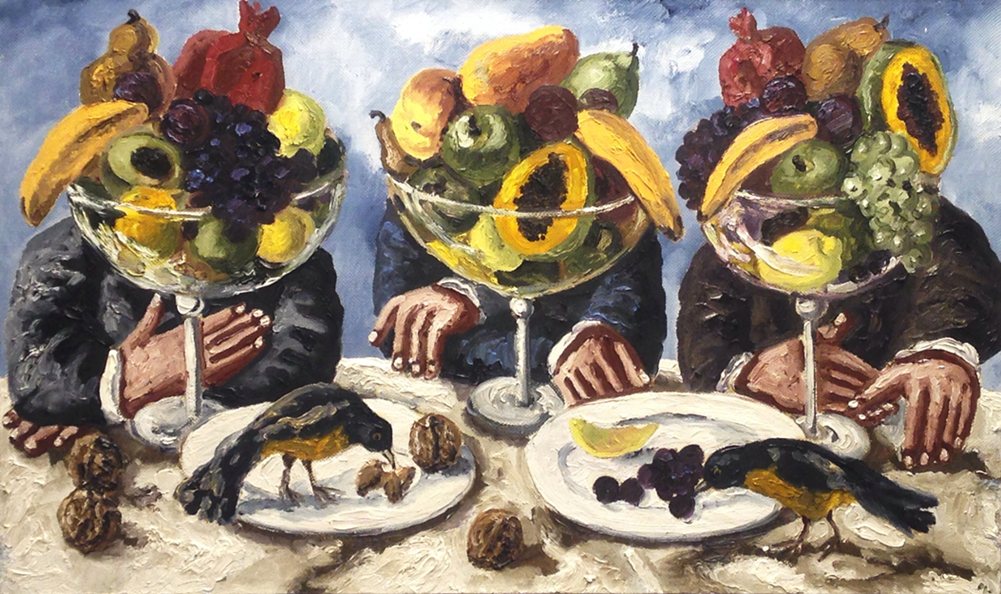Вкушающие яства за столами, сидящие в гамаке или играющие в карты персонажи – это представители вечности. Художник застал их за этим занятием и навсегда остановил этот миг. Отсутствие сиюминутности – одна из самых главных родовых особенностей творчества Натальи Нестеровой.