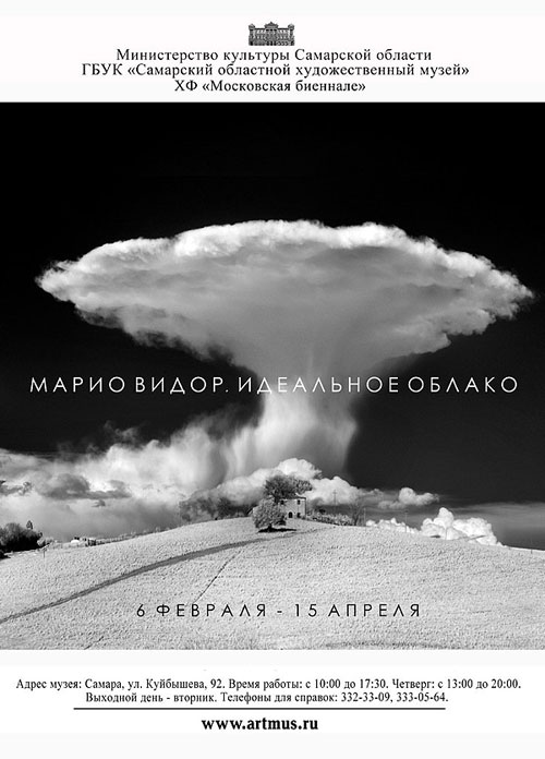 «Судьба свела меня с Марио Видором всего год назад на Фестивале фотографии в Ареццо – небольшом итальянском городке, расположенном к югу от Флоренции. Из разговора больше всего запомнилось то, что он смотрит на мир глазами фотографа, работающего в черно-белой тональности. Там же на фестивале я посмотрел его персональную выставку "Идеальное облако" и возникла идея показать ее в России. Работая над этой серией Марио пользовался цифровой фото-камерой NIKON 70, используя фильтры. Исходное изображение было в странных красно-синих тонах, а окончательный результат достигался превращением изображения в черно-белое. До появления цифровой камеры Марио Видор долгое время снимал на пленку. Позднее, около пяти лет назад увлекся инфракрасной фотографией, поэтому в сути вопроса он разбирается очень хорошо.