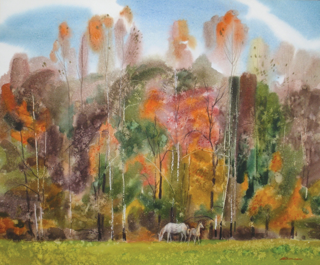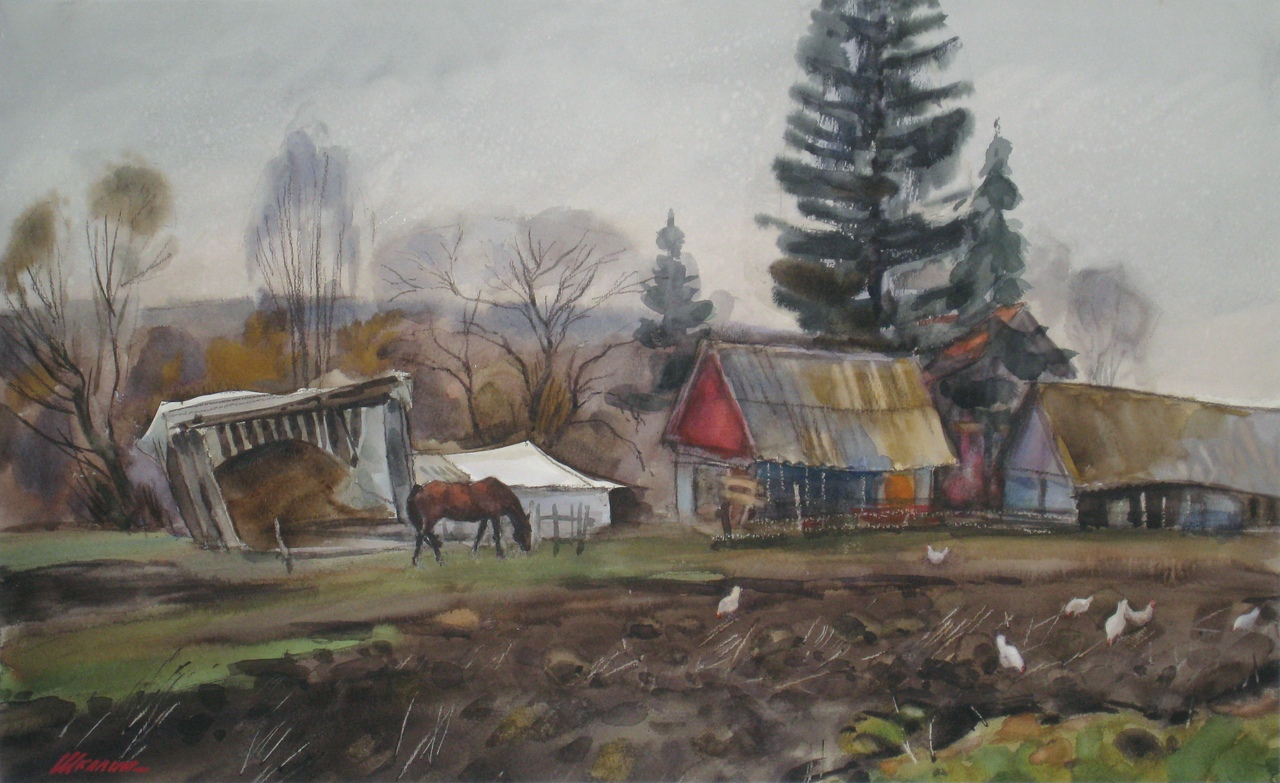 В акварельных сериях, которые он начал создавать почти с начала творческой деятельности, развивается тема пейзажа. В известных циклах «По Северу» (1976-1986), «Курский край» (1979-1996), «По Кольской земле» (1984), «Горячий Ключ» (1986), «Крым прибрежный» (1987-1994), «Псков» (1990) и других художник не только фиксирует свои личные наблюдения – он размышляет и стремится выстроить из отдельных изобразительных фактов сложный, очень точный и конкретный образ природы. Акварели написаны почти все с натуры, но художник не следует ей тщательно и скрупулёзно, а трансформирует увиденное, стремясь к выразительности своих композиций, что сохраняет жизненность и убедительность картин. Отказываясь от подробностей, которые в какой-то мере могут нарушить стройность задуманного образа, он приходит к условности и обобщённости композиционного решения. Его акварельные пейзажи привлекают живостью, позитивным восприятием жизненных наблюдений. За внешней скромностью и простотой сюжетов ощущается поэтическое видение и одухотворённость.