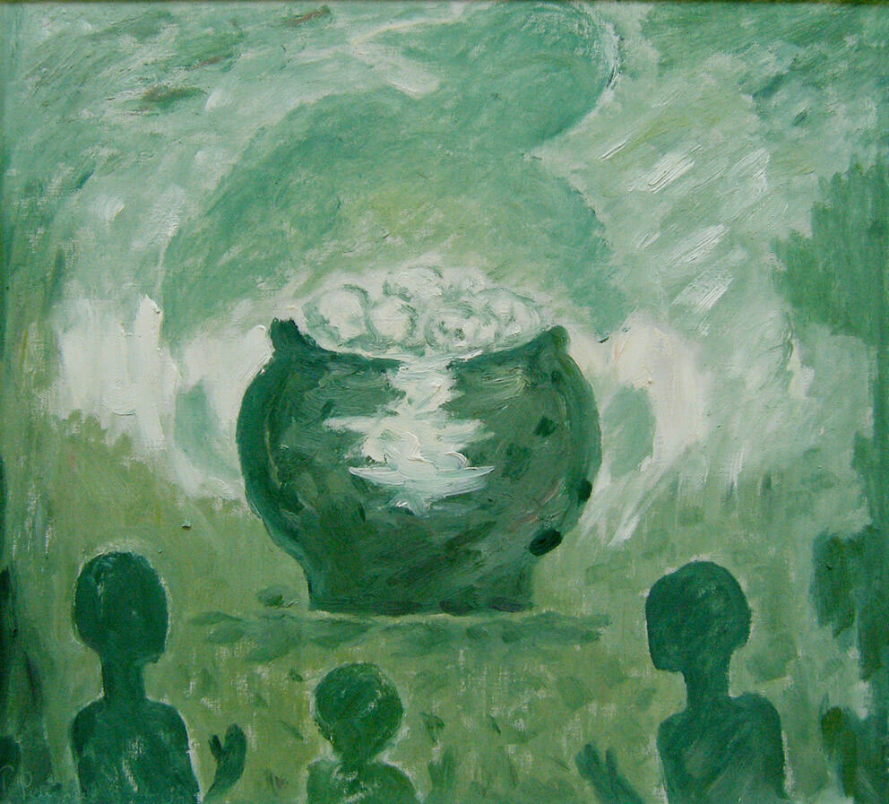 Образы собственного детства воссозданы в сюжетах «Чугунок картошки», «Мать». «Это наше детство: чугун картошки, и мы, дети, рады – на ней мы жили - на картошке и соленой рыбе».
