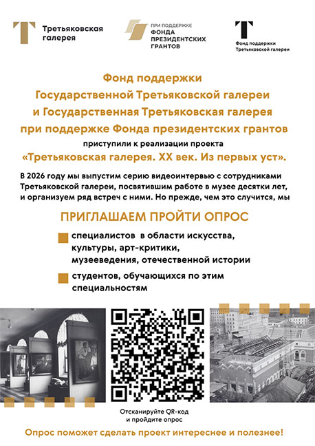 Проект реализуется Фондом поддержки Третьяковской галереи в партнерстве с Государственной Третьяковской галереей с использованием гранта Президента Российской Федерации, предоставленного Фондом президентских грантов.