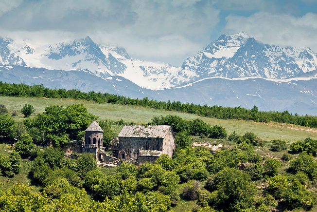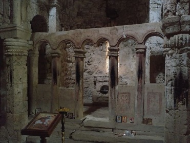 Руины храма Вахтана с фрагментами фресок XV в., руины Цхракара.